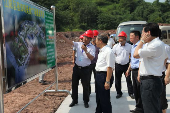 7月21日下午,市委半年流动现场会走进兴阳集团,市委书记蒋辅义带队视察了我司梨子园、夜知味美食广场等重点项目的建设情况,并对项目建设给予了高度评价。区委书记付小平、区长杨长缨等领导陪同视察。