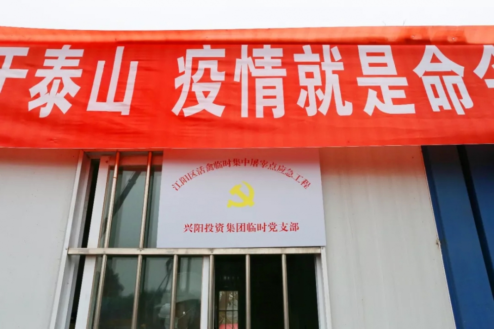 2月6日,在江阳区活禽临时集中屠宰点应急工程项目现场,兴阳投资集团临时党支部授牌成立,为项目建设装上“红色引擎”。