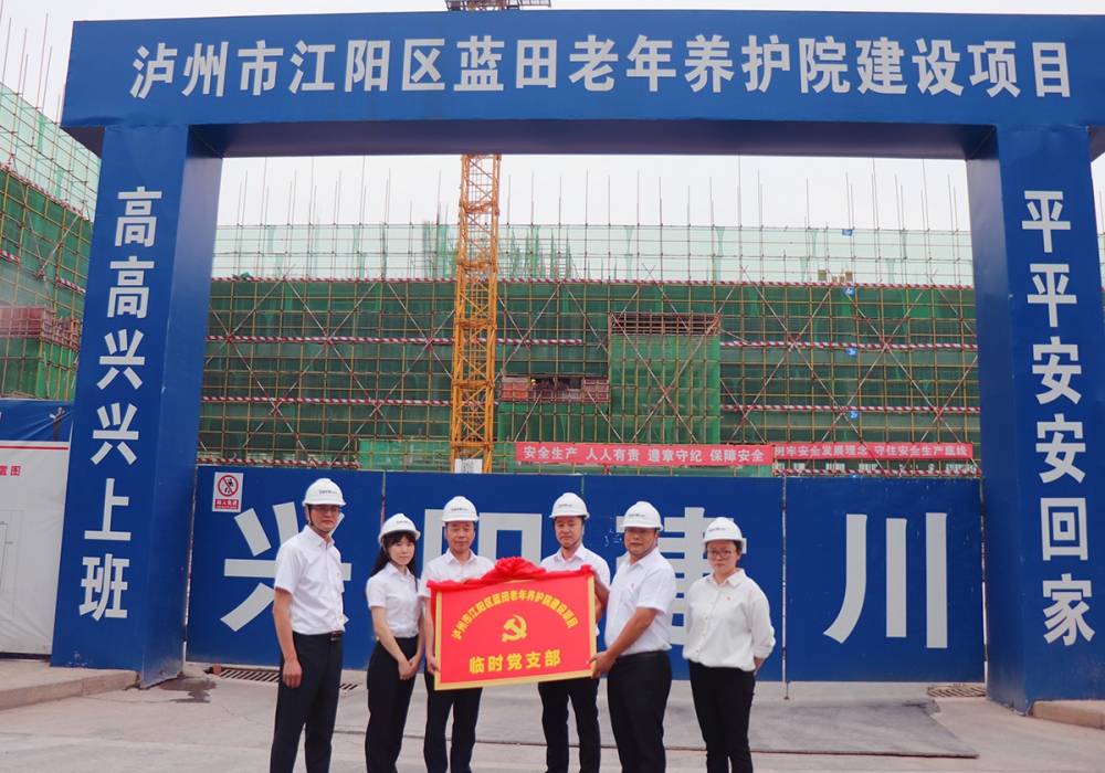 2023年5月25日,泸州市江阳区蓝田老年养护院建设项目临时党支部授牌仪式在项目现场举行,集团党委副书记、纪委书记余清冰出席本次活动。