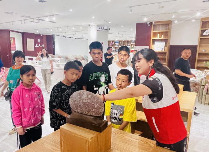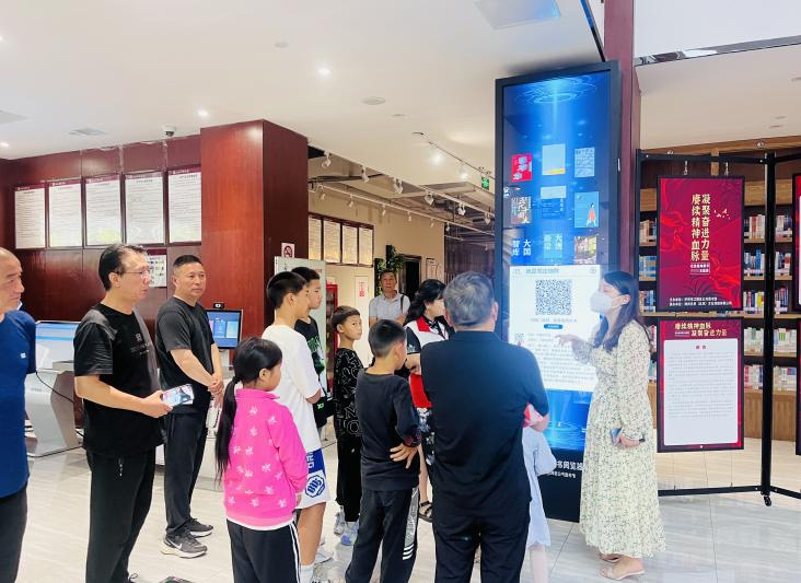现场工作人员带领留守儿童依次参观了公共服务大厅、文创展区、VR体验室等区域,在少儿阅览室开展了亲子阅读活动,详细介绍了图书馆线下电子借阅和线上移动阅读的操作流程。