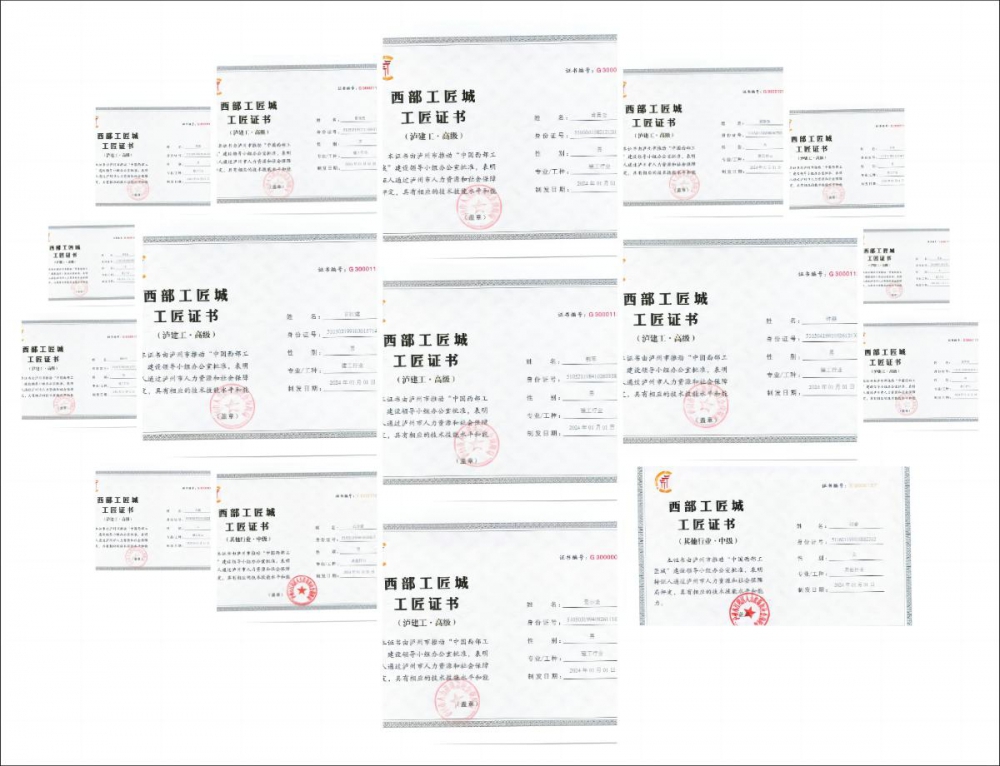 近日,经泸州市推动“中国西部工匠城”建设领导小组办公室批准,城投、建川公司肖昌云、黄学金等16名同志经过泸州市人力资源和社会保障局评定,成功取得泸州市首批“泸字号”西部工匠城工匠证书,以下是具体的获证人员名单: