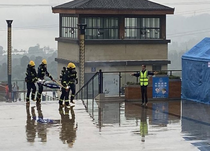 近日,集团公司与张坝公司联合在西门游客接待中心进行开展消防安全应急演练。演练共设置七个科目,出动职工50余人,协助参演消防救援人员20余人,涉及值班上报、抢险救援、疏散引导及医疗救护等多个环节。