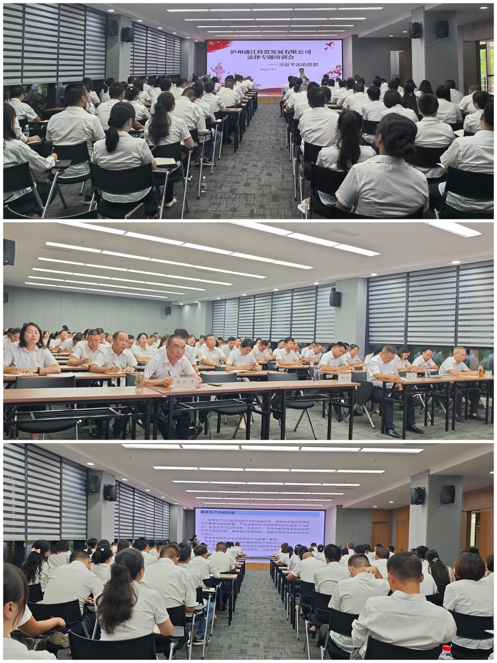 为深入学习贯彻习近平法治思想,落实党的二十届三中全会精神,强化领导干部和职工法治思维,提高国有企业抗风险能力,9月29日下午,sunbet官网投资发展组织开展习近平法治思想专题培训。sunbet官网投资发展在家班子成员,兴阳投资集团在家班子成员及各部室(中心)在编在岗员工,各全资子公司中层以上管理人员共计110余人参与培训。