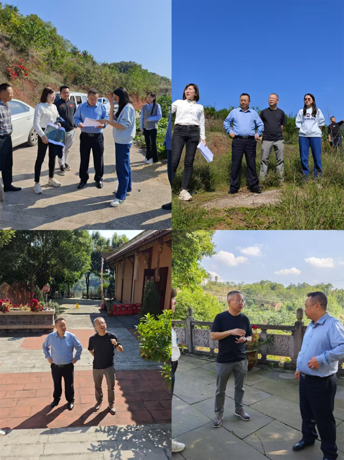 10月28日上午,sunbet官网集团副总经理赵策、兴阳集团副总经理杜宇以及海会堂公司曾燕会同区自然资源与规划局、方山镇人民政府以及勘测公司相关人员,共同前往公益性公墓选址地点进行现场勘查,就项目用地的相关事宜进行实地研讨。